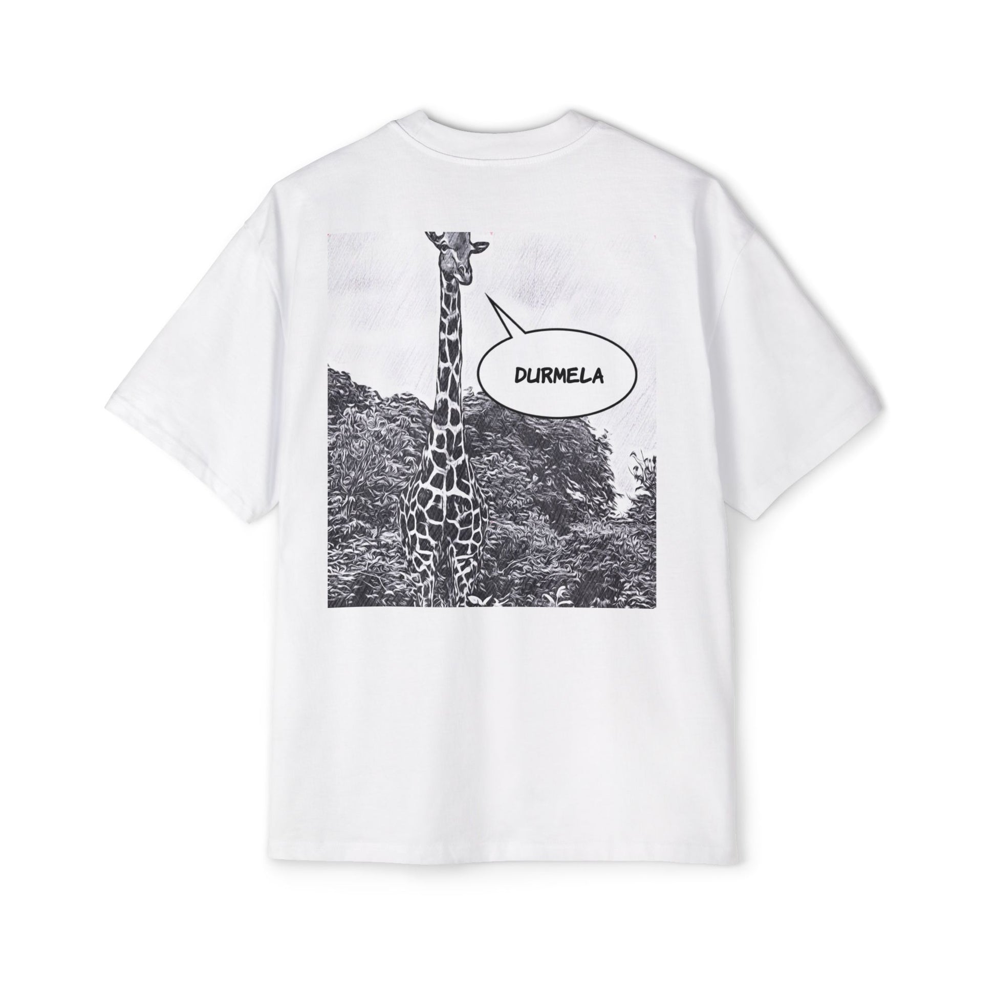 This Men's Botswana Durmela design oversized T-shirt is made from 100% carded cotton for durability and comfort. The dropped shoulders and oversized fit give it a relaxed feel. Perfect for men looking for a statement tee with a unique design.